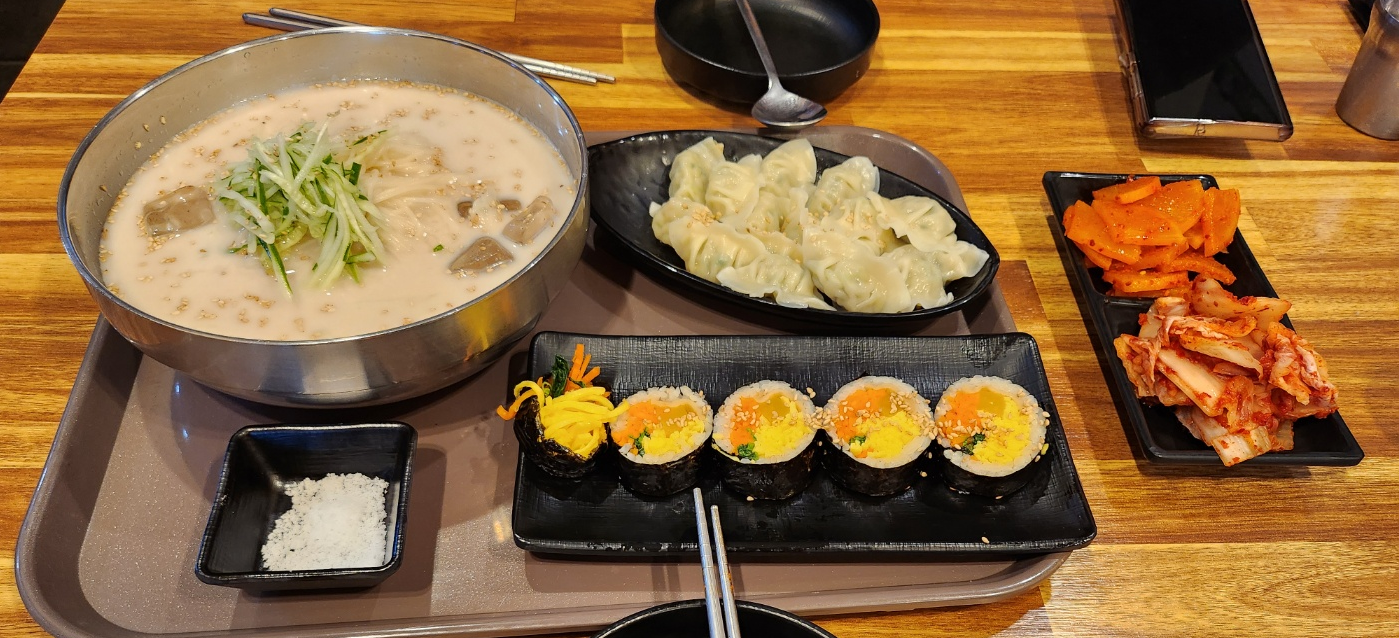 콩국수, 물만두, 야채김밥(반줄), 순대